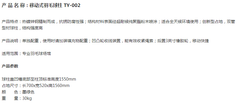 > TY-002 钢结构羽毛球柱(灌沙) 运动场羽毛球场专业球柱