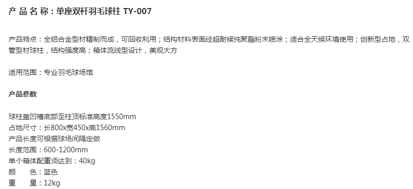 > TY-007 单座双杆羽毛球柱
