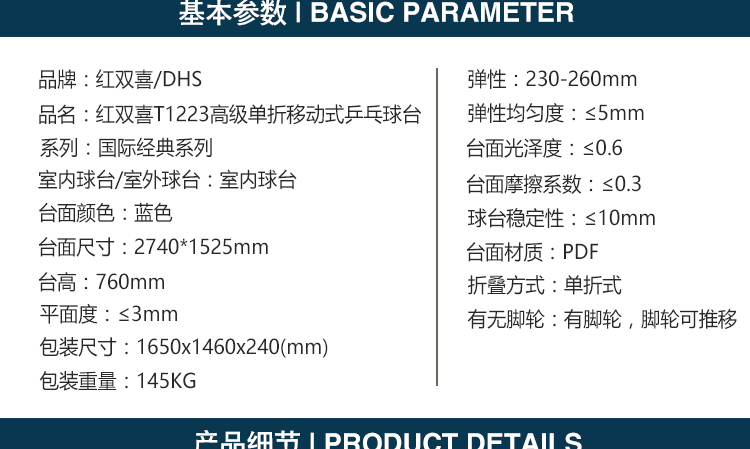> 乒乓球台T1223高级单折移动式球台乒乓球桌球台