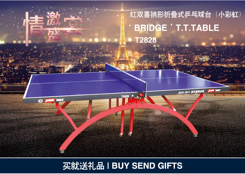 > T2828乒乓球台室内标准比赛小彩虹家用折叠乒乓球桌