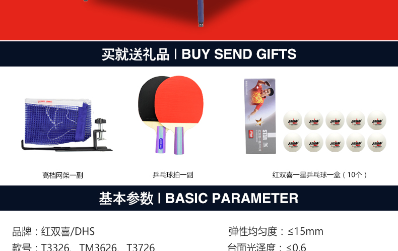 > T3726乒乓球台标准家用折叠移动两用室内乒乓球桌